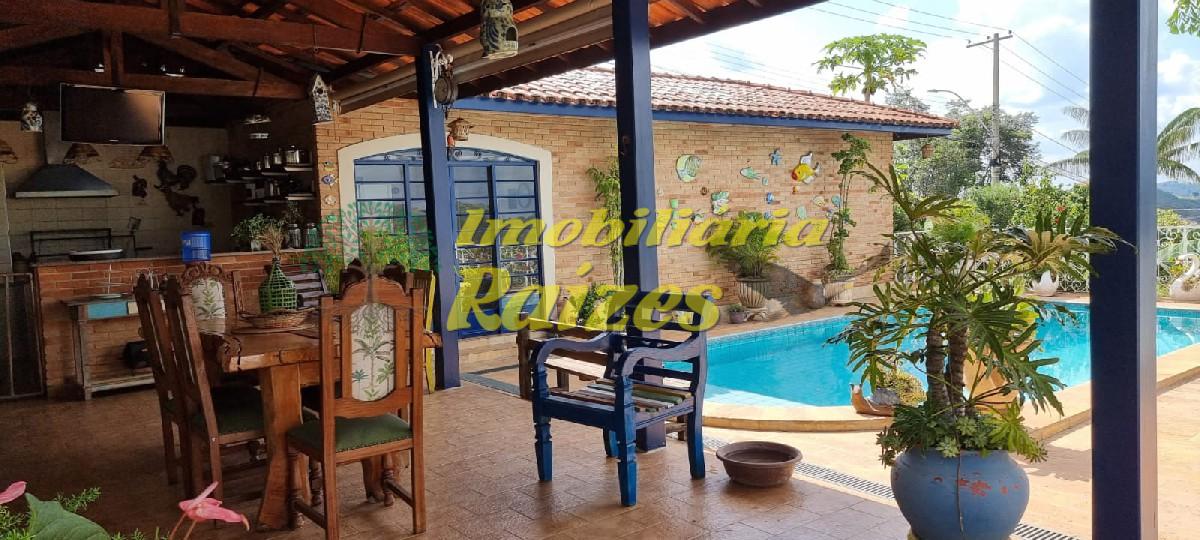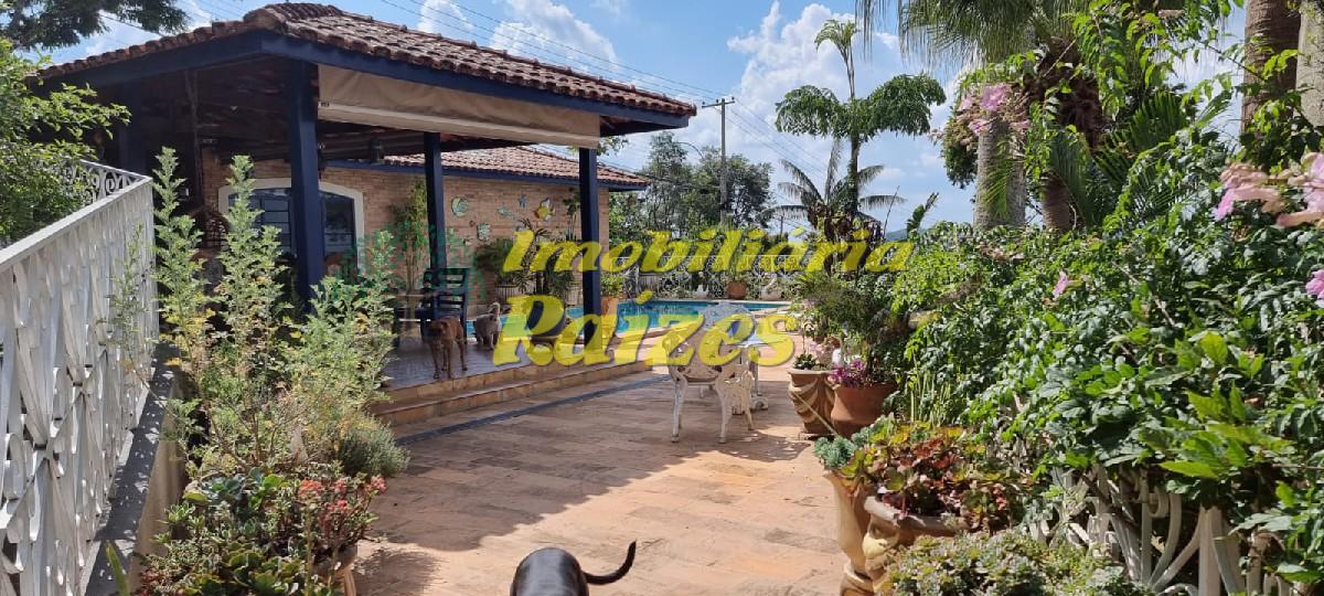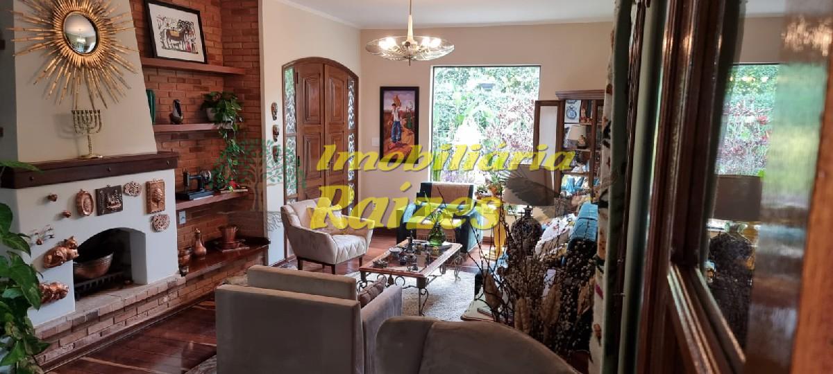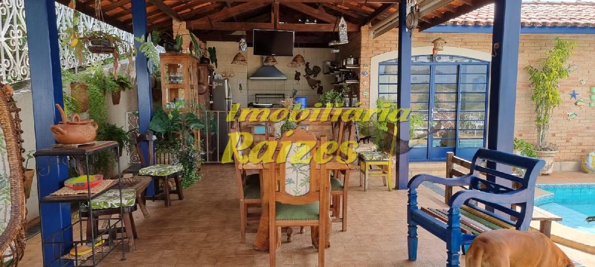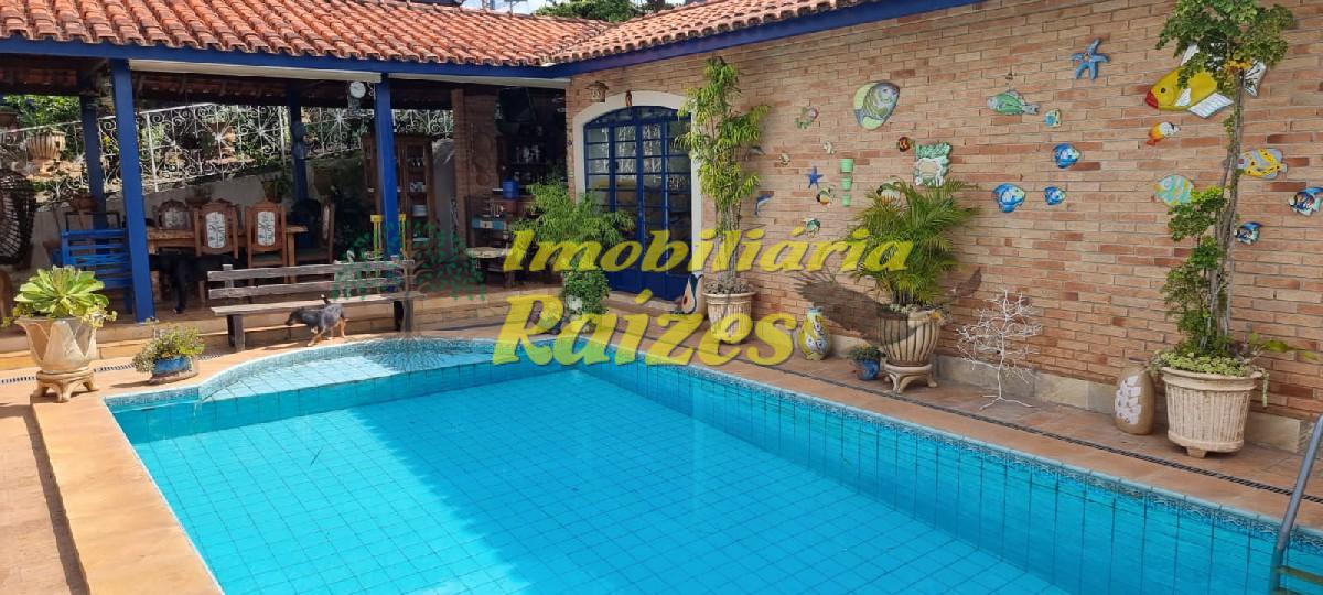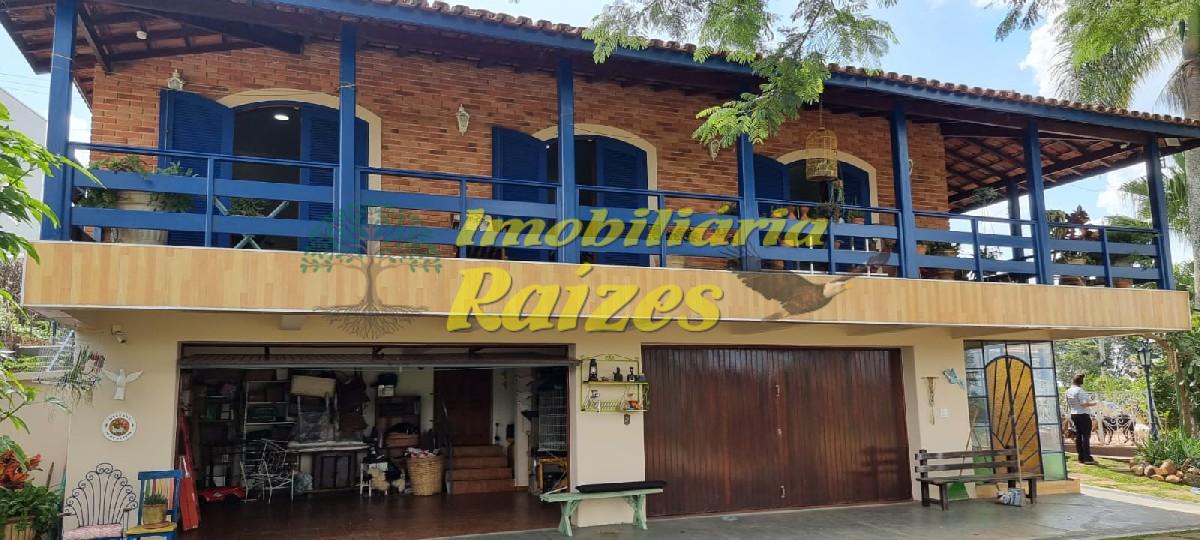 LInda casa com acabamento em tijolos a vista, 2 quartos (sendo 1 suíte com banheira) ambos com saída para varanda, armários embutidos em madeira maciça, banheiro social, lavabo, escritório, sala com dois ambientes jantar e estar com lareira, cozinha, dispensa, dependência de empregada, garagem coberta para 4 carros, piscina, churrasqueira, sauna úmida, quintal grande todo gramado com flores.