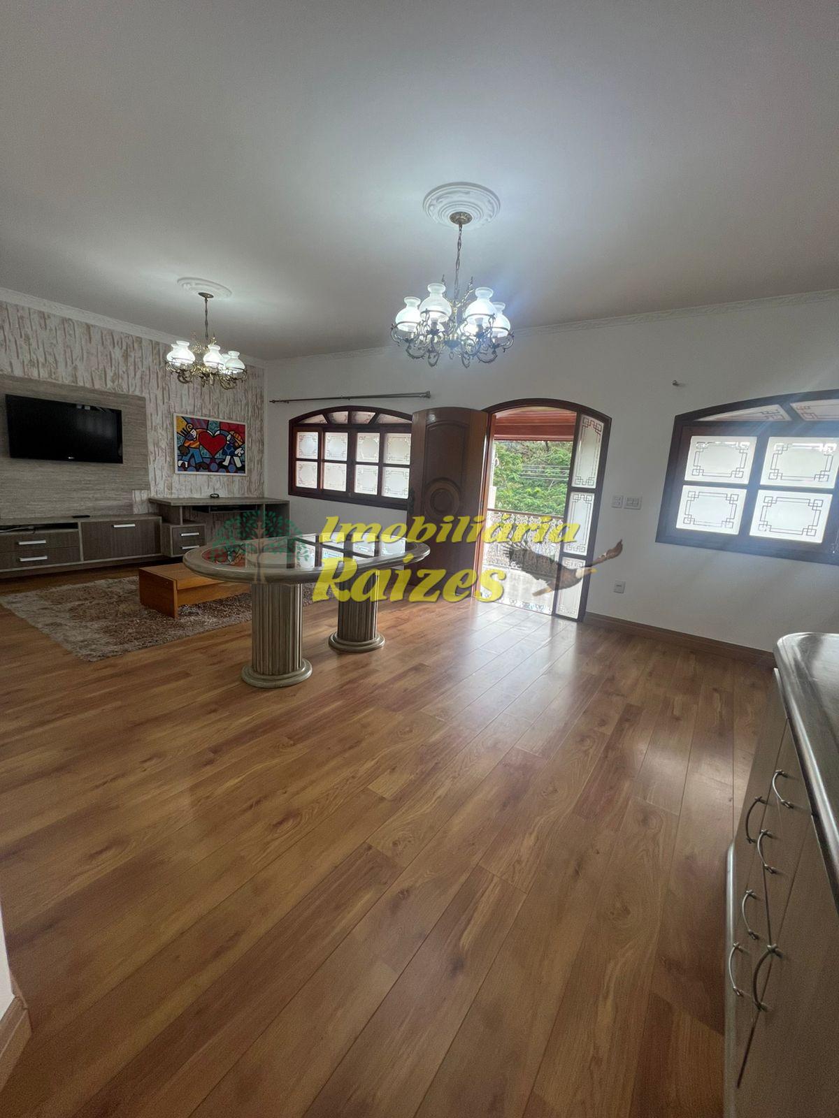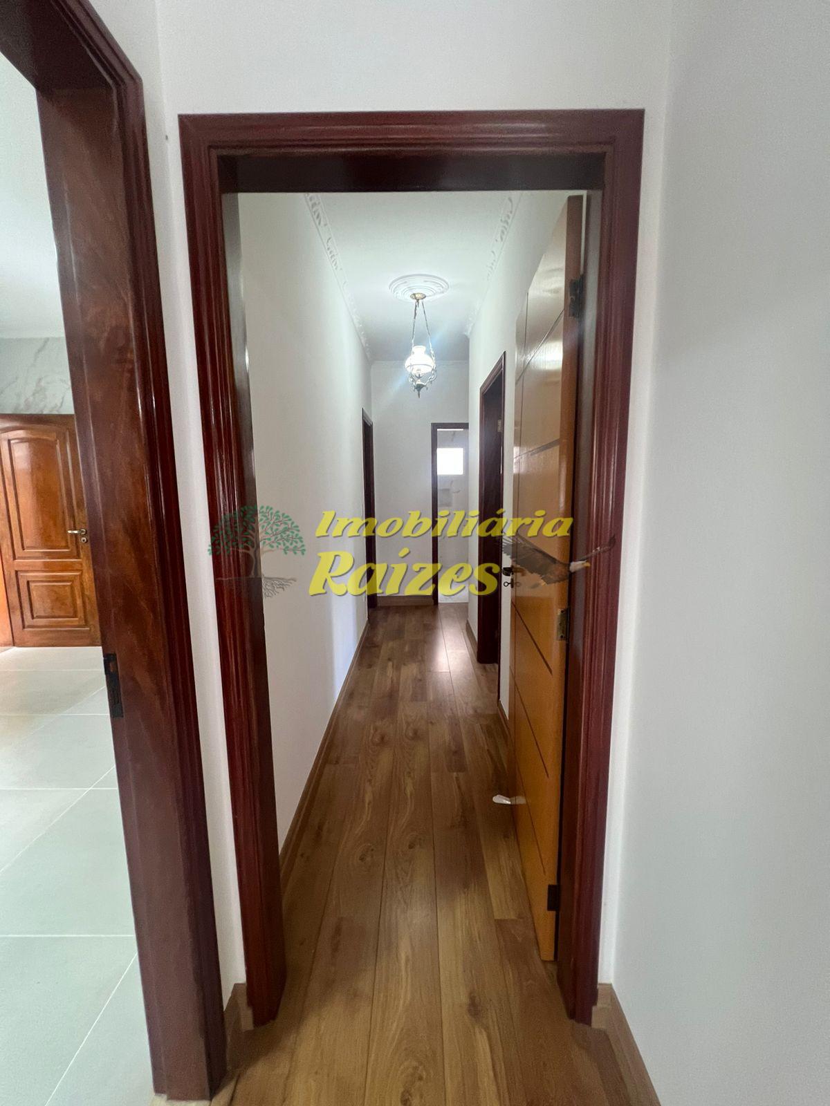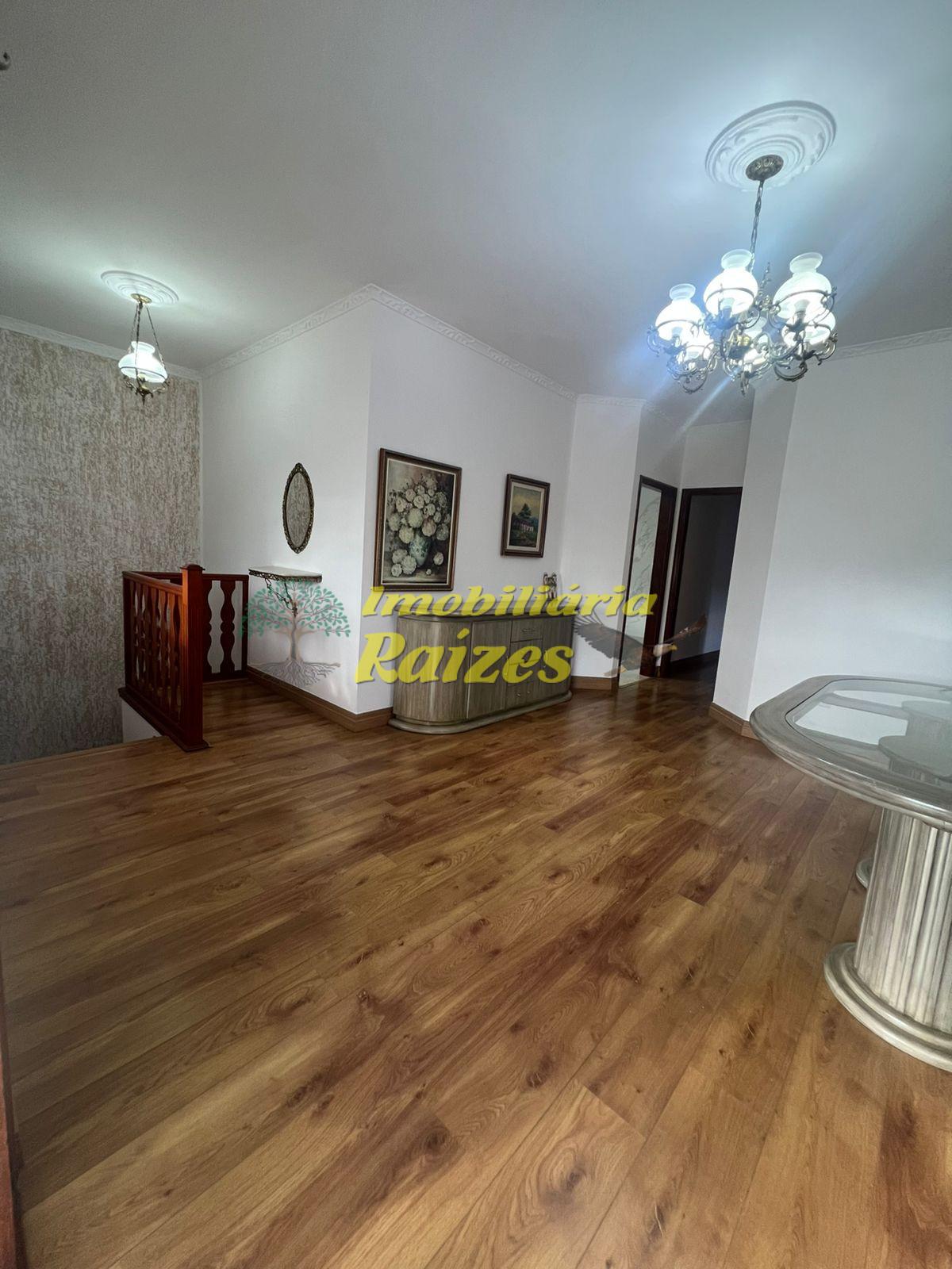 O imóvel conta com três dormitórios amplos, sendo um deles uma suíte, além de banheiro social, sala espaçosa com capacidade para até três ambientes, varanda que círcula a residência, cozinha, quintal e lavanderia. No pavimento inferior, há acesso á garagem, um escritório, um dormitório adicional e um banheiro.