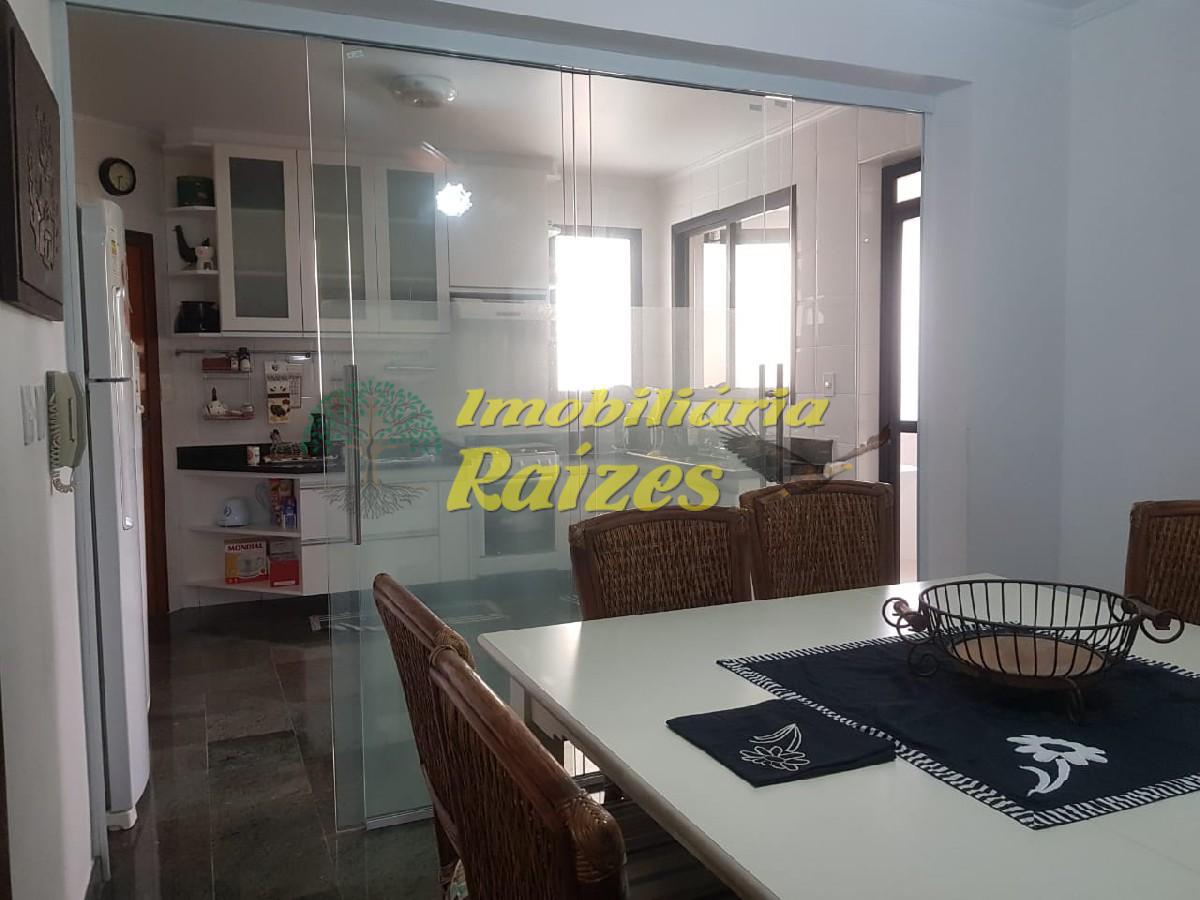 03 suítes com sacada, sala ampla com sacada, banheiro social, cozinha, área de serviço, dependência de empregados.