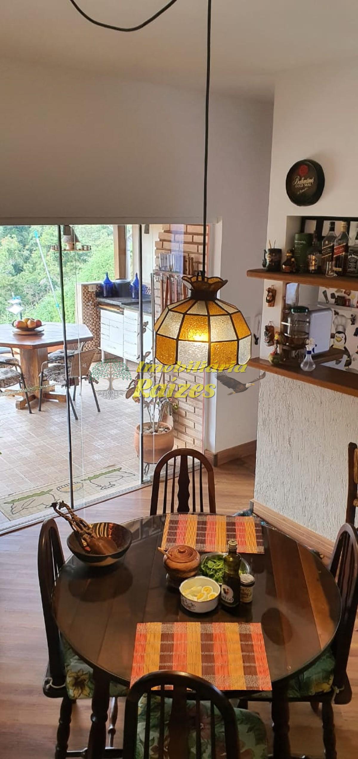 sala de jantar, sala de estar com lareira, cozinha americana com armários planejados, lavanderia.