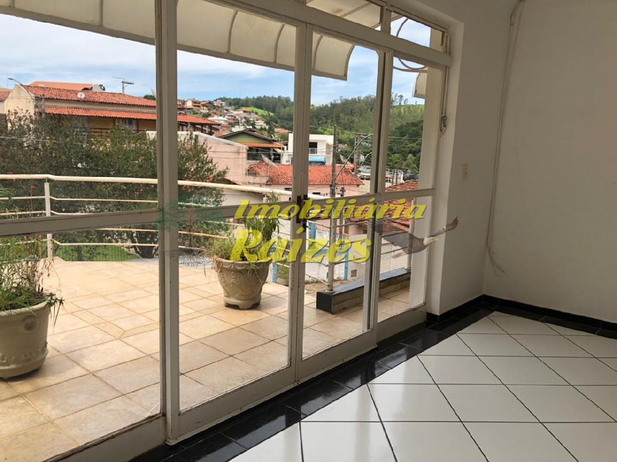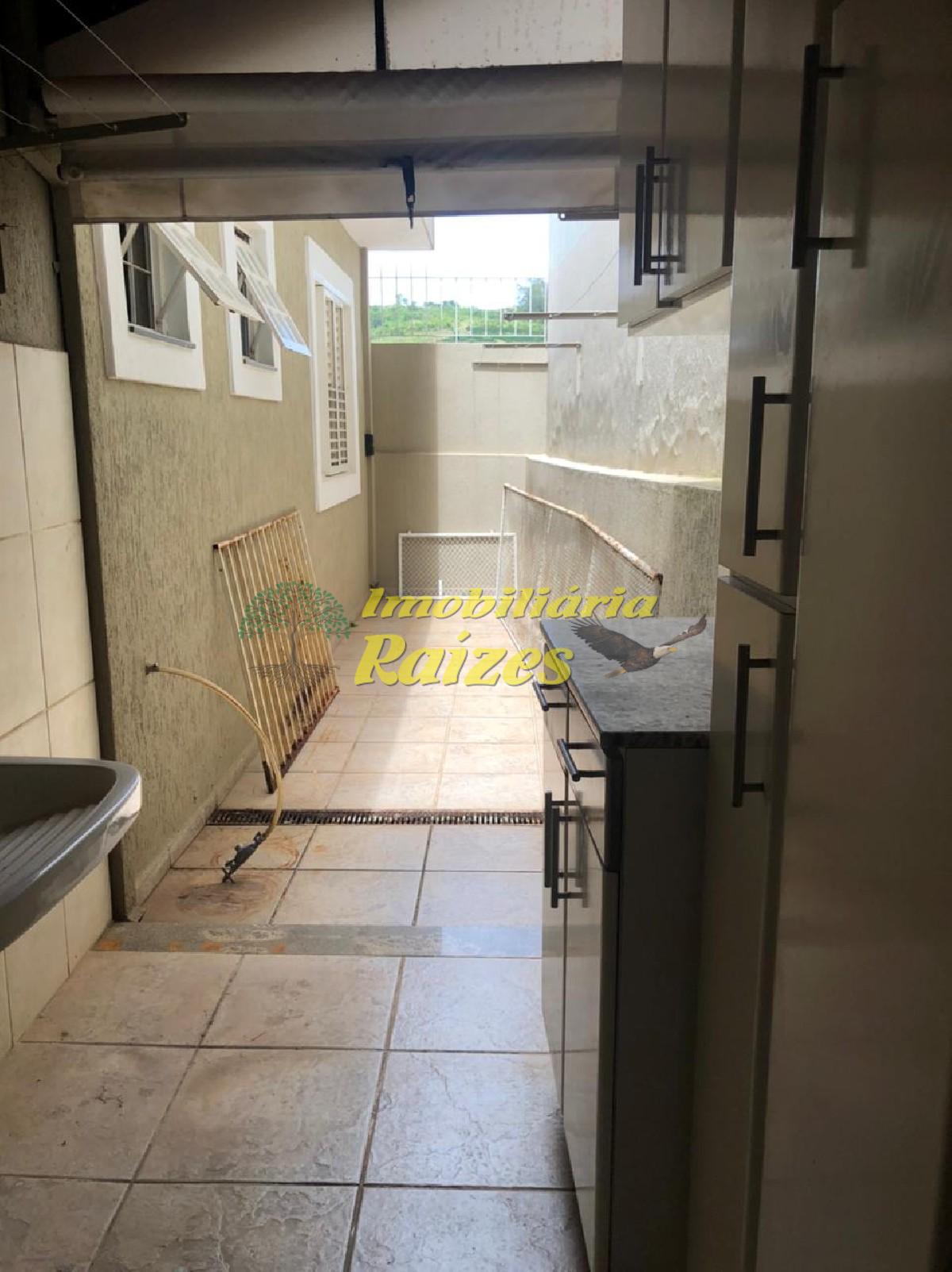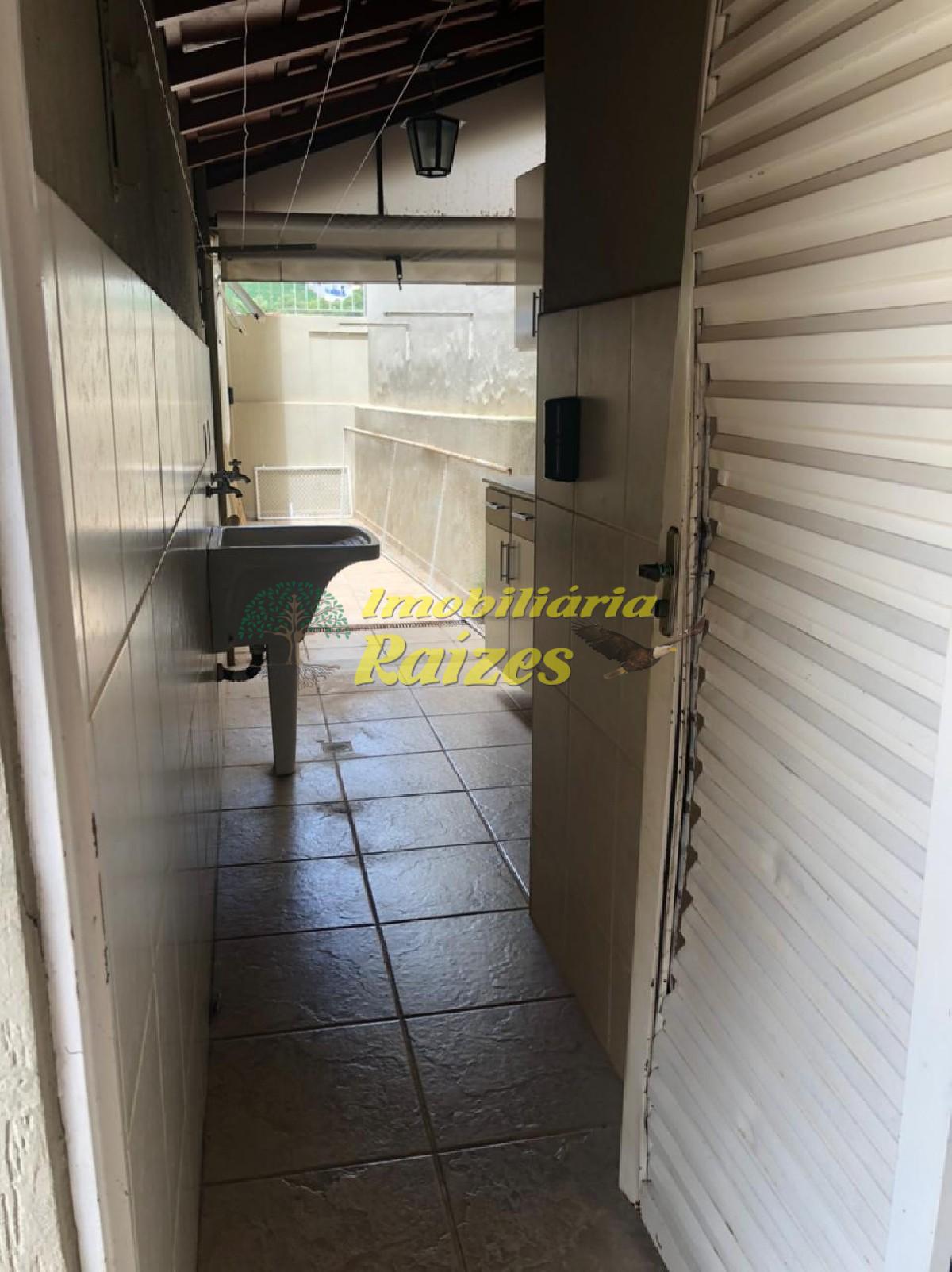 Casa com 3 dormitórios, um deles suíte, 02 quartos com armários, cozinha com armários, banheiro, sala com sacada. Quintal com churrasqueira, banheiro e Piscina