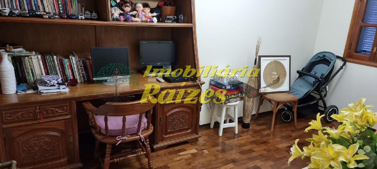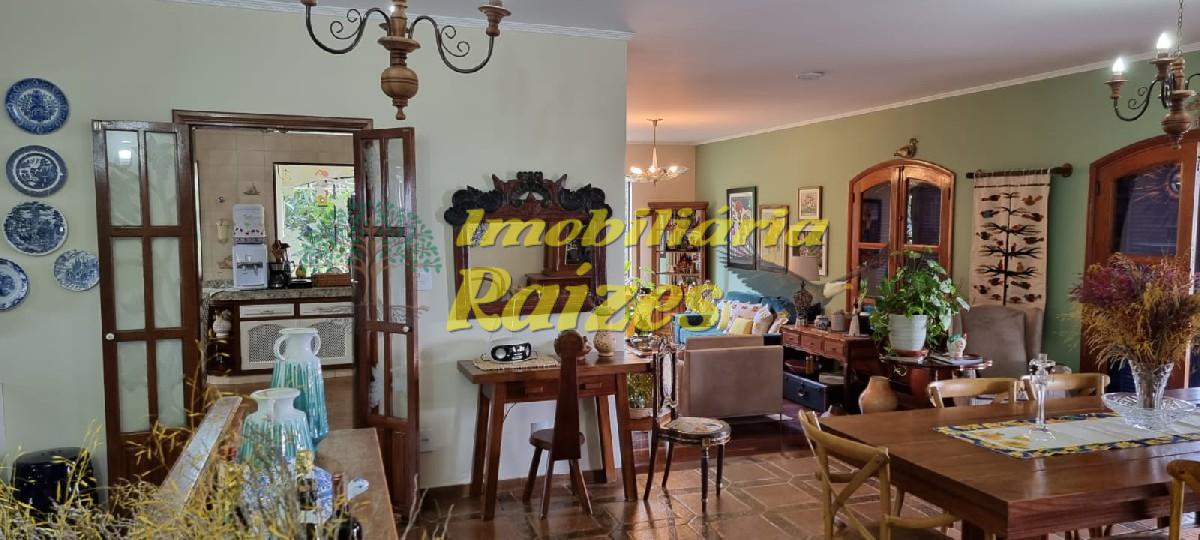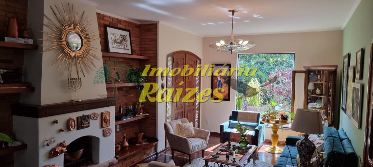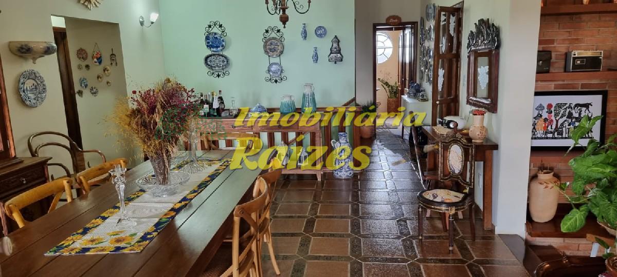 LInda casa com acabamento em tijolos a vista, 2 quartos (sendo 1 suíte com banheira) ambos com saída para varanda, armários embutidos em madeira maciça, banheiro social, lavabo, escritório, sala com dois ambientes jantar e estar com lareira, cozinha, dispensa, dependência de empregada, garagem coberta para 4 carros, piscina, churrasqueira, sauna úmida, quintal grande todo gramado com flores.