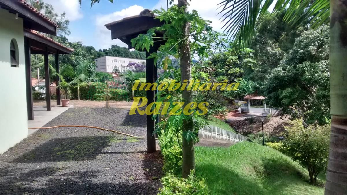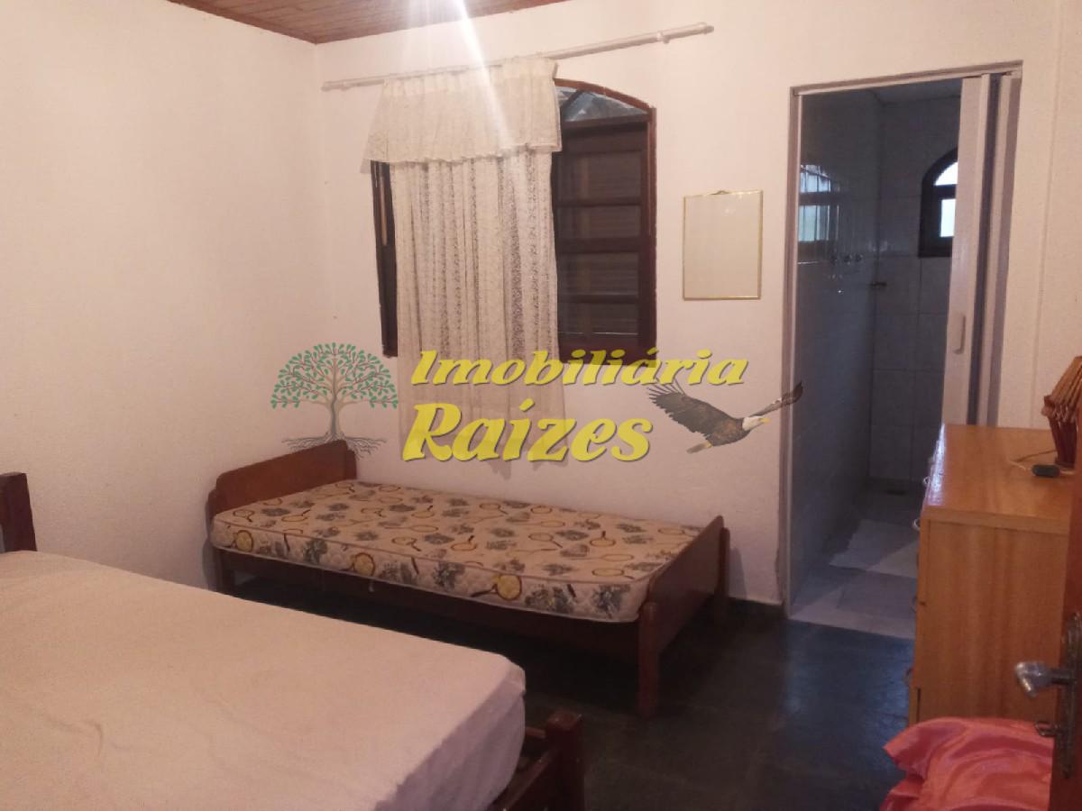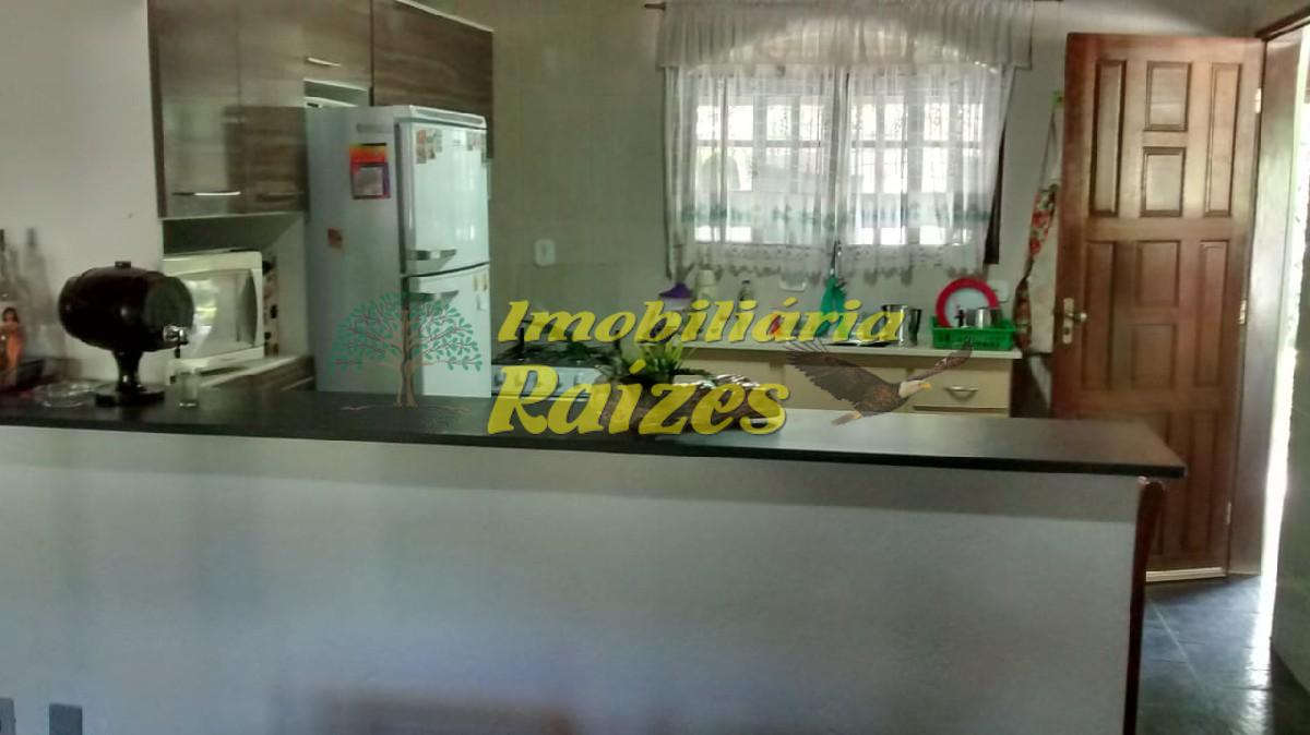 Casa 3 dormitórios, sendo uma suíte, sala com cozinha americana, churrasqueira, garagem coberta , jardim gramado com árvores.