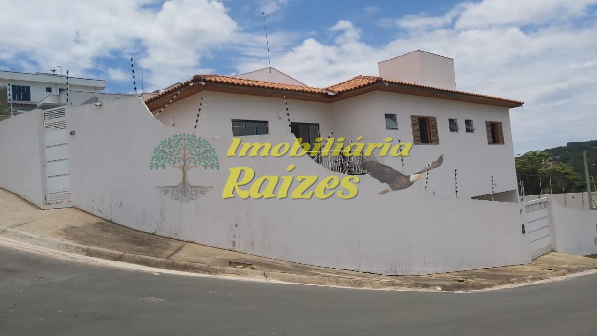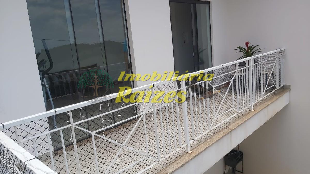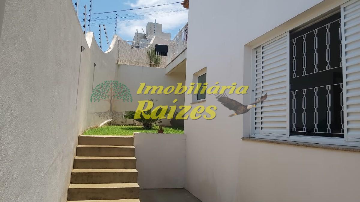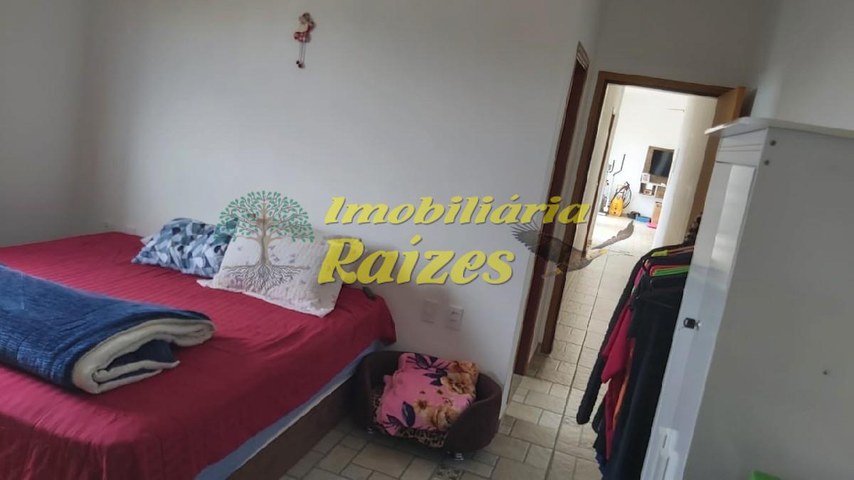 Casa com 3 dormitórios, sendo 2 quartos com suíte, 1 quarto grande, 1 banheiro na parte superior, na parte de baixo, banheiro, cozinha, sala, lavanderia, 2 jardins, garagem para 2 veículos.