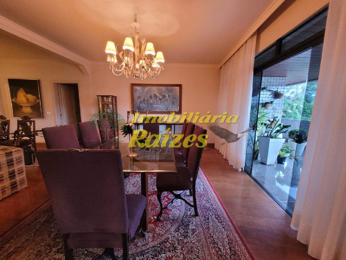 O Apartamento possui 4 Suítes sendo 2 com hidromassagem; Sala 4 ambientes com lareira; Lavabo; Ampla área gourmet com churrasqueira e uma vista espetacular; Ampla cozinha com armários planejados, Área de Serviço com despensa; 3 vagas de carro demarcado e coberto;