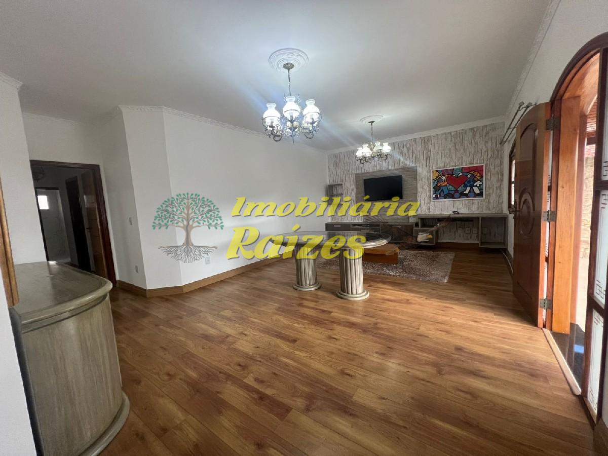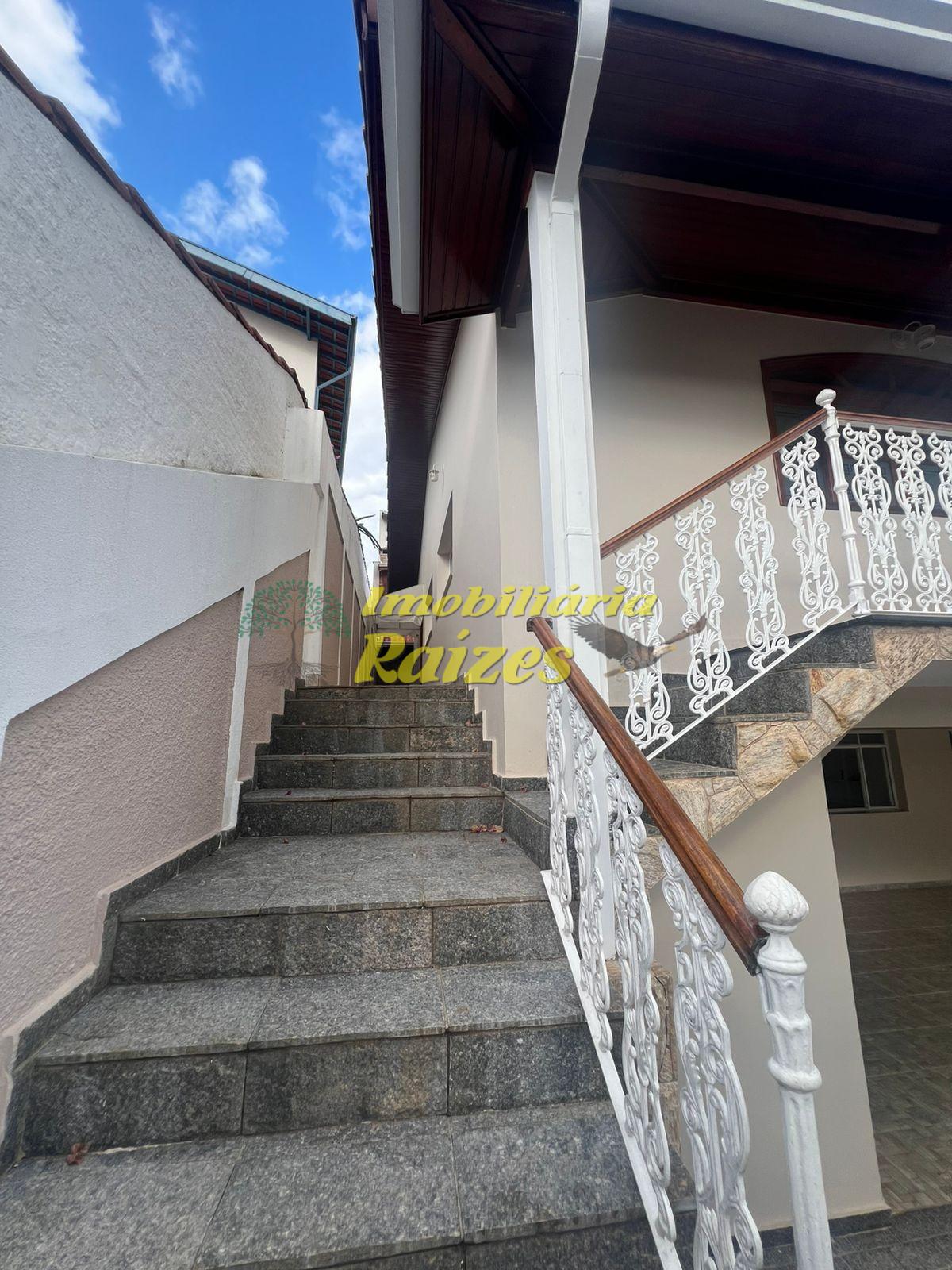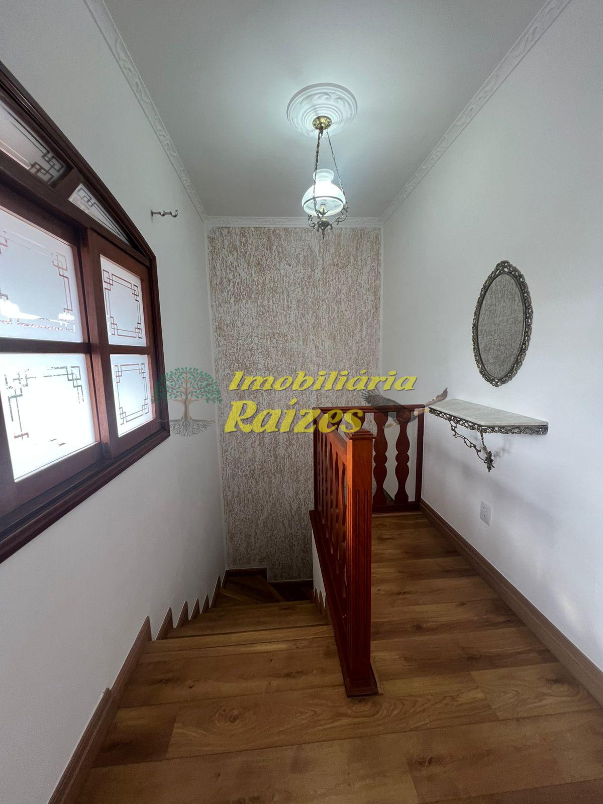 O imóvel conta com três dormitórios amplos, sendo um deles uma suíte, além de banheiro social, sala espaçosa com capacidade para até três ambientes, varanda que círcula a residência, cozinha, quintal e lavanderia. No pavimento inferior, há acesso á garagem, um escritório, um dormitório adicional e um banheiro.